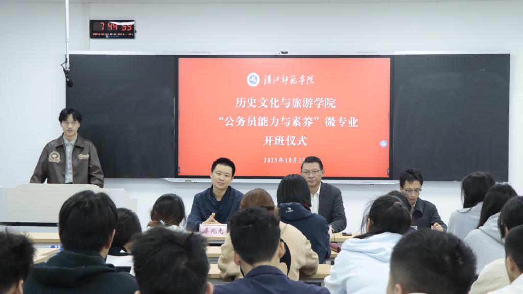 历史文化与旅游学院在崇文楼 C101举行第79期入党积极分子培训、第五期青马工程和新发展团员培训开班仪式,分团委负责人文雨欣老师主持开班仪式。文老师介绍了相关管理制度与考核要求,希望同学们好好珍惜此次培训机会,学习有关知识,提高知识储备。 院分党委书记任自玲老师以《坚持知行转化,书写中国式现代化的青春篇章》为题,为同学们做了第一讲。任书记从中国传统的知行合一思想、习近平的知行论、当代大学生的知行观培...