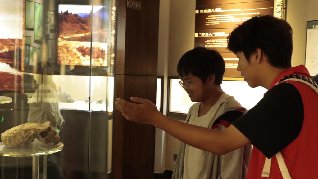 活动伊始,在罗书记与陈老师的统筹组织下,60名留堰学生有序集结、安全抵达十堰市博物馆。怀着对历史文化的好奇与向往,同学们在引导下开启参观之旅。从见证远古生命奇迹的恐龙蛋化石,到实证百万年人类演化史的郧县人头盖骨,再到承载武当山道教文化的特色展品,每一处馆藏都成为学院向学生传递文化自信、厚植家国情怀的生动载体。同学们跟随着讲解,沿着十堰从远古到近现代的历史足迹,深刻感受中华文化的悠久底蕴与鄂西北地域文化的独特魅力,爱国之情与对本土文化的认同感在参观过程中不断升华。