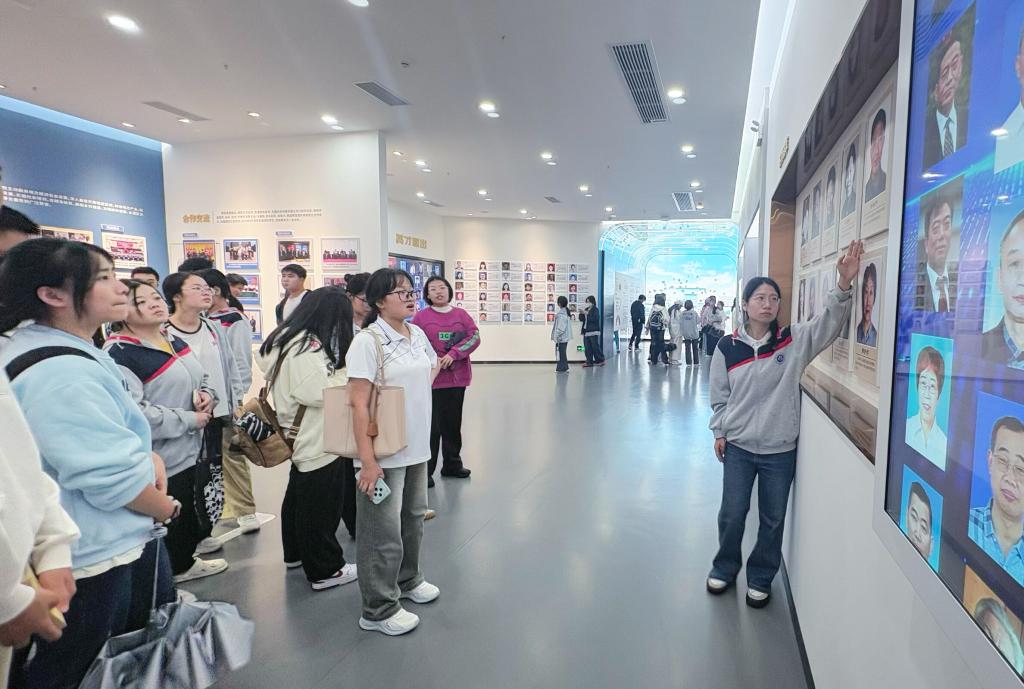 在“奉献篇”展区,学校“车轮上的学校”往事让新生们深受触动。讲解员动情讲述,60年间学校为支持丹江口水利枢纽、三线建设、南水北调等国家重大工程,先后历经6次迁建,从郧阳到丹江再到十堰,即便面临校园被淹、地基塌陷等困境,仍始终顾全大局、坚守办学。而新时代汉师青年志愿者开展的“九色鹿”“南水情长”等水生态保护公益项目,更让新生们看到这份担当的传承。此外,从“文脉起源”里郧山书院的文脉延续,到“跨越篇”中学校2016年升格为本科院校、成为全国唯一以“汉江”命名高校的跨越,再到“校友展示区”里胡安梅、蔡明镜、吴勇等优秀校友的事迹,都让新生们在点滴校史中感受到学校的坚守与力量。