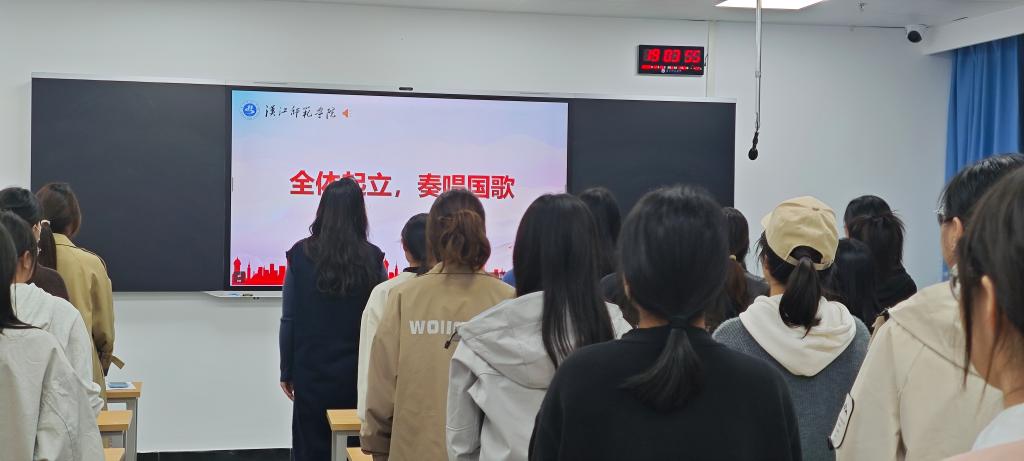 仪式在庄严的国歌声中拉开帷幕,全体人员起立,奏唱国歌,激昂的旋律激发了在场每一位同学的爱国热情和进取精神。