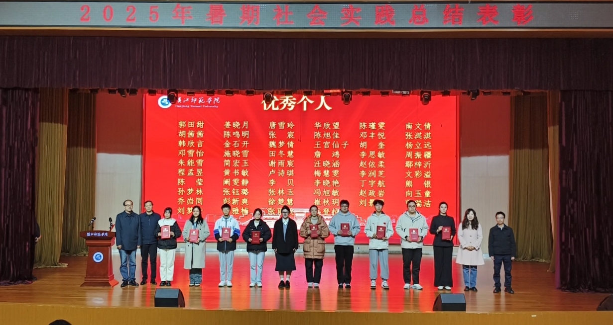 报道11月19日晚,“青春为中国式现代化挺膺担当——2025年暑期社会实践总结表彰暨‘我的实践答卷’青春分享会”在南风剧场顺利举行。历史文化与旅游学院在本次表彰中表现突出,分团委获评“优秀组织单位”,4支实践团队、4名指导教师及11名学生分获优秀团队与先进个人荣誉称号,充分展现了学院实践育人工作的扎实成效。