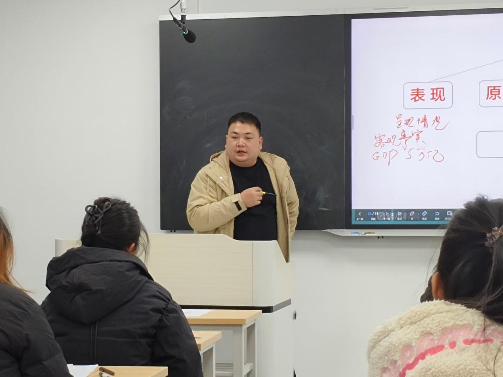 上午,李老师聚焦行测判断推理模块开展精讲。她从图形推理、逻辑判断、定义判断、类比推理四大核心题型切入,系统梳理各类题型的推理规律,结合典型真题拆解解题思路。通过“规律讲解+题目演练”的互动模式,帮助在场学生快速掌握行测判断推理的答题技巧,为微专业学生夯实课程核心知识,也让旁听学子对行测题型形成清晰认知。