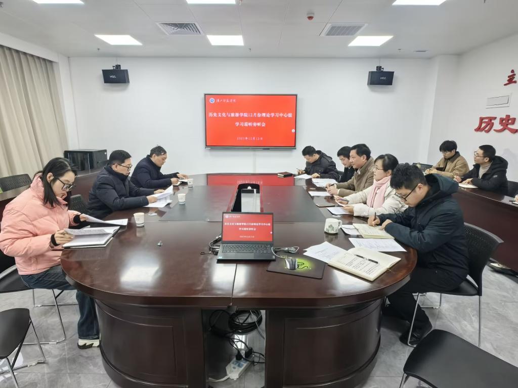 12月12日下午,历史文化与旅游学院党委理论学习中心组在求真楼A813会议室举行12月份学习会。学校党委常委、统战部部长王进率巡听旁听工作组成员,统战部副部长张文杰、图书馆刘志慧老师到场指导。学院党委书记任自玲主持学习会,学院中心组全体成员参加学习。