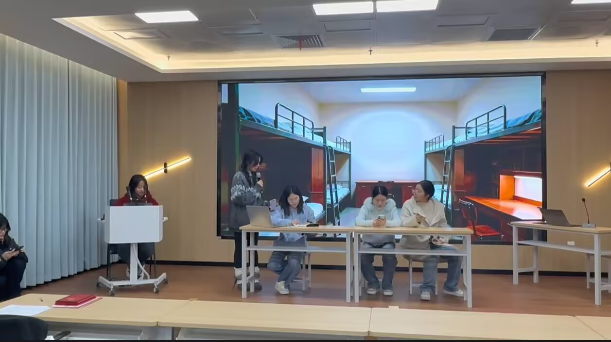 这份荣誉的背后,是剧组全体成员近一个月的潜心筹备与不懈付出。为精准刻画主人公从沉溺虚拟到觉醒重建的复杂心路历程,演员们利用课余时间反复研读剧本、打磨台词,对每一句台词的语气、每一个肢体动作的节奏都精雕细琢;后台工作组为呈现“虚实交织”的舞台视觉效果,多次调试灯光参数、优化投影素材,全力保障演出的完整性与感染力。面对更广阔的展示平台与实力强劲的对手,剧组成员沉着应战、默契配合,用真诚的演绎与专业的表现赢得了评委与现场观众的一致认可。