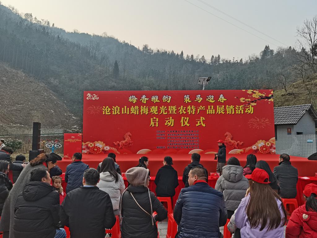 活动当天,沧浪山国家森林公园内腊梅盛开、清香四溢,游客络绎不绝。饶军一行出席了“沧浪山腊梅观光暨农特产品展销活动启动仪式”,实地考察了公园的腊梅景观资源与民俗文化氛围,对管委会以花为媒、以节促旅,推动文旅融合发展的做法给予了高度评价。活动现场,我院代表还与当地农户、参展企业进行了交流,了解了农特产品的展销情况,感受了乡村振兴战略在当地的生动实践。